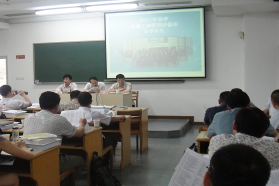 新学员代表吴俊在讲话时也表示,十分荣幸能参加2011年春季高级工商管理研修班的学习,一定会好好珍惜这次学习的机会,以优异的学习成绩回报企业和社会。